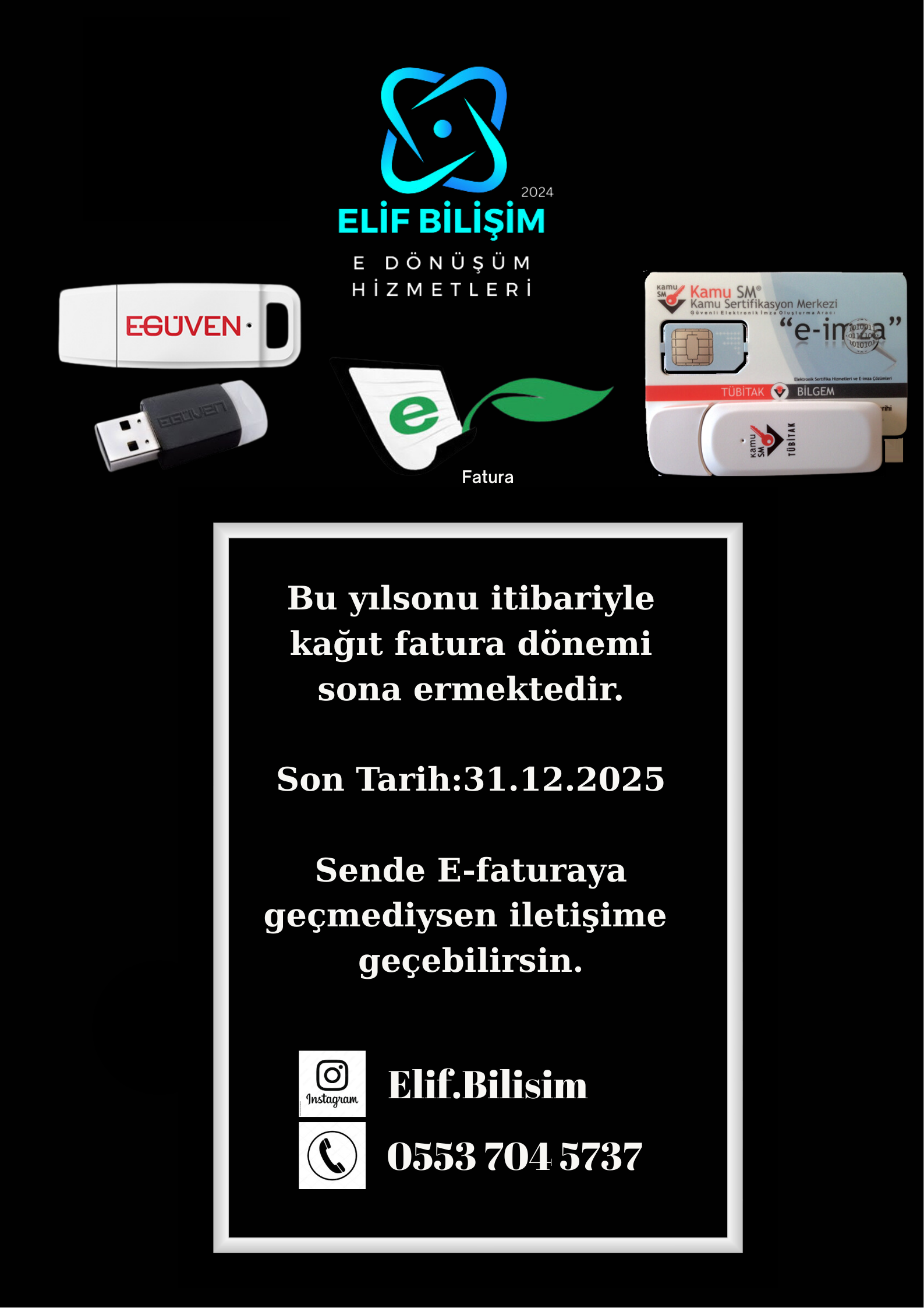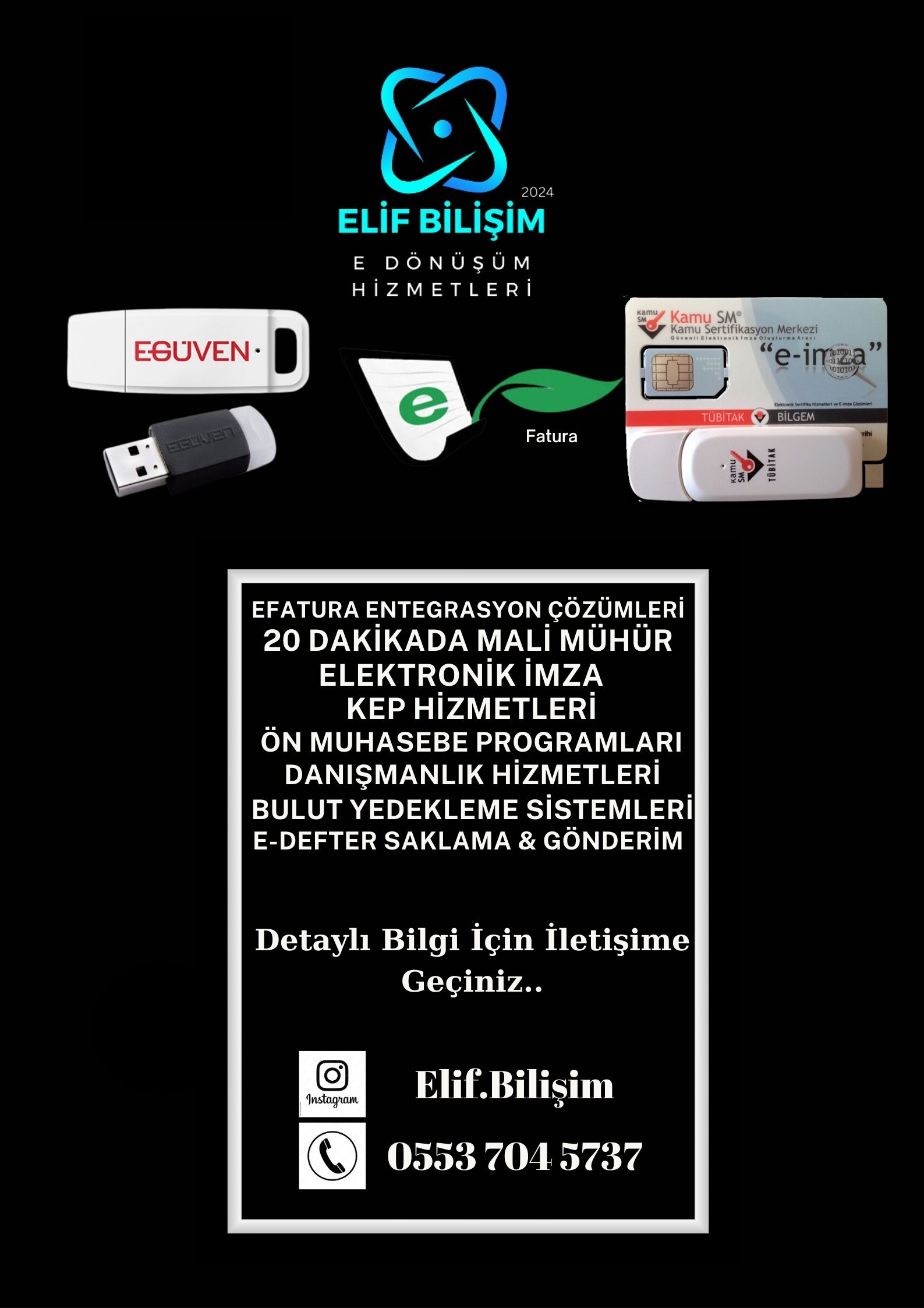 Elif Bilişim olarak, dijitalleşen iş dünyasında şirketlerin daha hızlı, güvenli ve verimli çalışmasını sağlıyoruz. E-dönüşüm alanında sunduğumuz kapsamlı çözümlerle, işletmelerin tüm yasal süreçlerde uyumlu kalmasını ve dijital dünyada rekabetçi olmasını destekliyoruz.